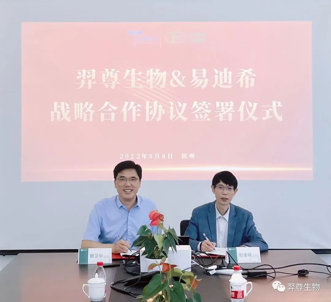 8月8日,羿尊生物医药(浙江)有限公司(以下简称“羿尊生物”)与嘉兴易迪希计算机技术有限公司(以下简称“易迪希”)在杭州举行战略合作签约仪式。